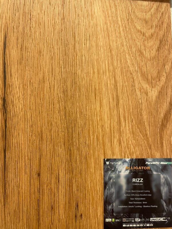Die Alligator-Kollektion von Republic® Floor Europe vereint rohe Kraft mit unvergleichlicher Eleganz und bringt eine wilde, ungezähmte Schönheit in Ihr Zuhause. Dieses WPC-Produkt beeindruckt mit einer stabilen Gesamtdicke von 8,0 mm, einschließlich einer 1,0 mm starken Korkunterlage, die für hervorragende Trittschalldämmung sorgt. Die Oberfläche verfügt über eine synchrone Prägung, die die Ästhetik und Haptik natürlicher Materialien einfängt.